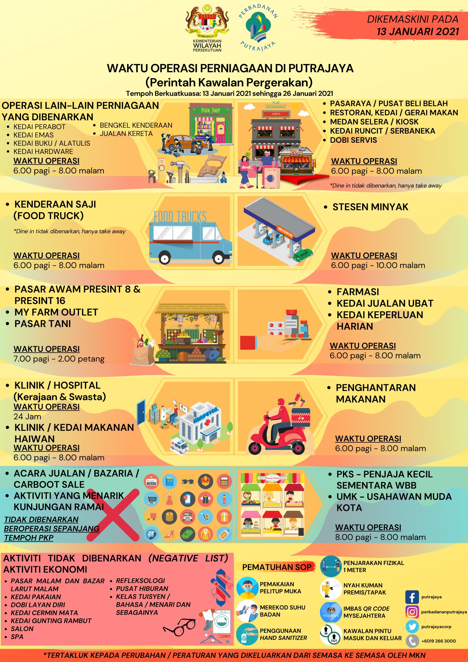 Perbadanan Putrajaya On Twitter Waktu Operasi Perniagaan Di Wilayah Persekutuan Putrajaya Sepanjang Perintah Kawalan Pergerakan Pkp Dari 13 Jan Hingga 26 Jan 2021 Stayhome Staysafe Pkp2021 Https T Co Gkgcbfq23a Twitter